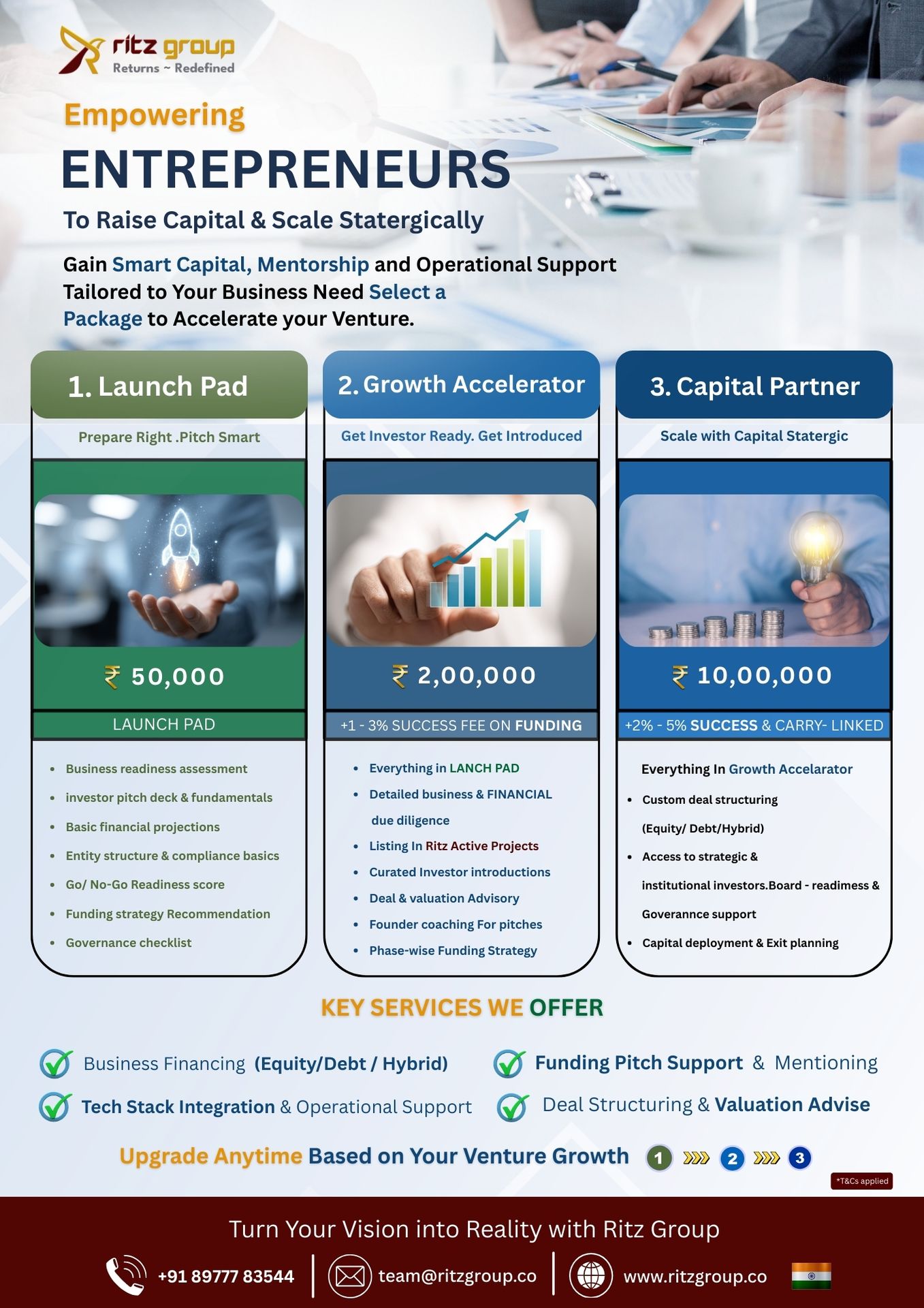 - Custom deal structuring (Equity / Debt / Hybrid)